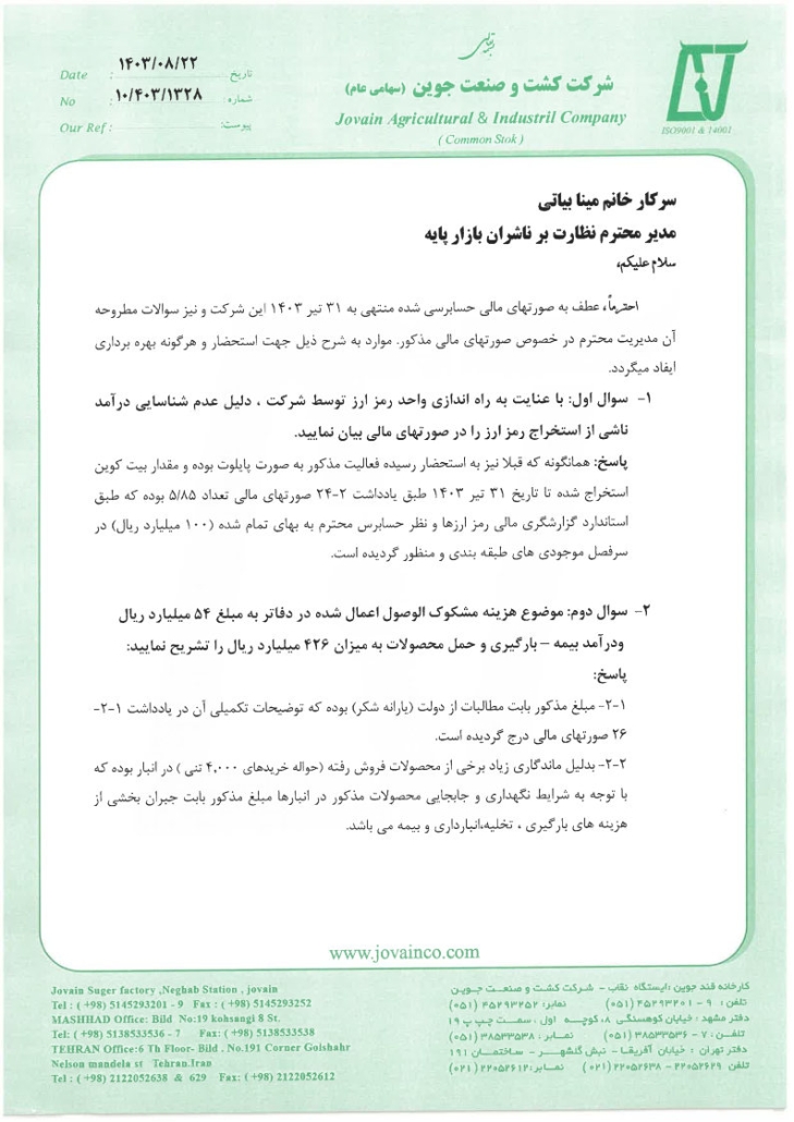 در خصوص اطلاعیه منتشر شده با شماره پیگیری 1264912در تاریخ 1403/08/14 به استحضار می رساند توضيحات در مورد صورت‌هاي مالي تلفيقي 12 ماهه منتهي به 1403/04/31 (حسابرسي شده)