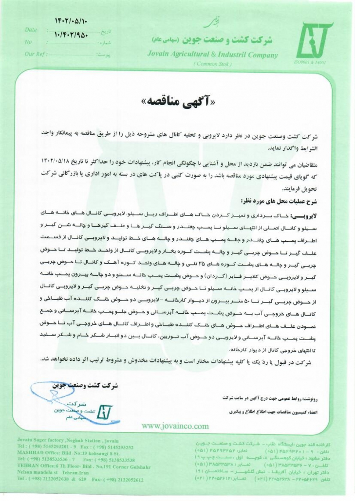 ضمن تقدیر از همراهی سهامداران عزیز؛ امیدواریم در ادامه مسیر با همراهی شما و همت والای مدیریت و پرسنل شرکت کشت و صنعت جوین؛ افق های روشنی پیش رویمان باشد.